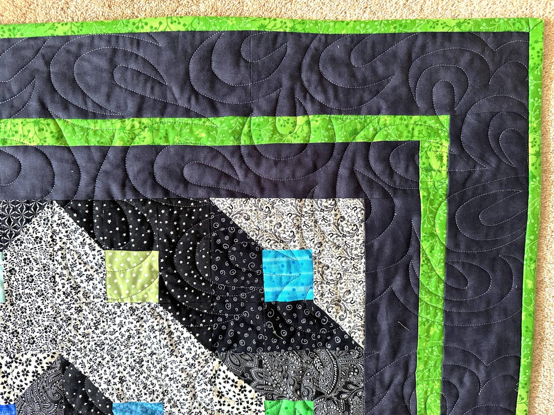 Anne's baby mat made with 2 1/2" scrap squares and quilted using a JuJu edge to edge quilt design