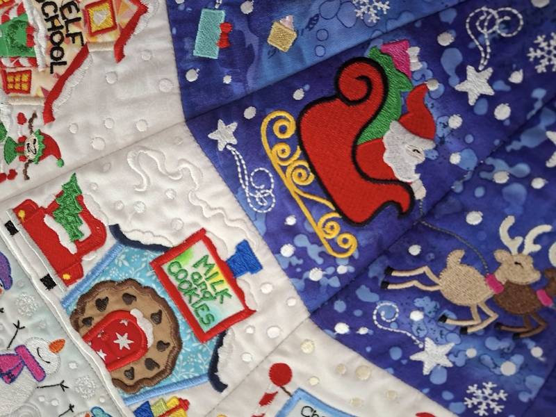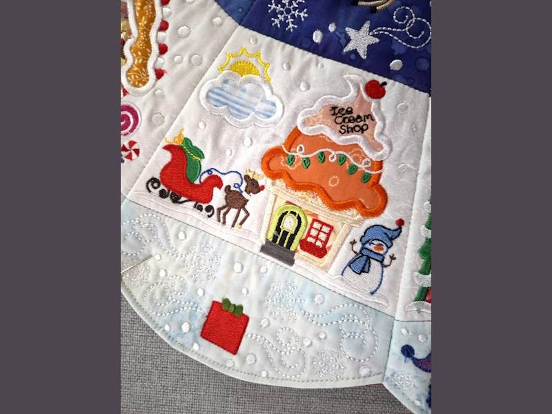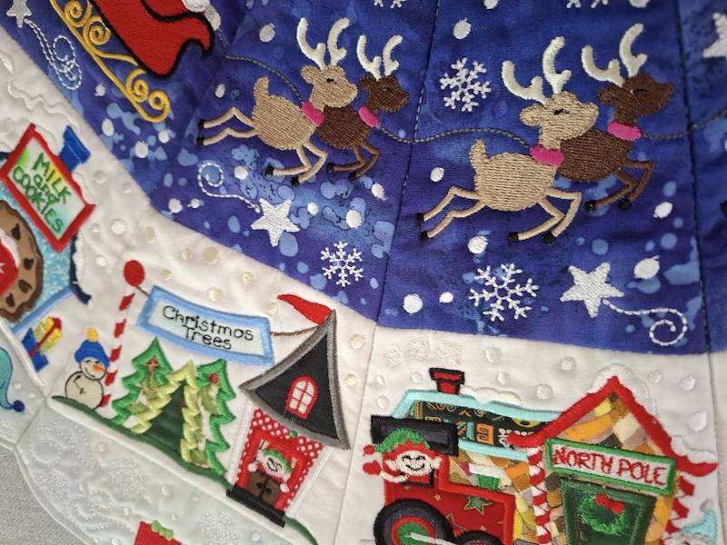 This amazing Christmas Tree skirt was made by Diane. The design is by Designs by JuJu and is called North Pole Tree Skirt. Zoom in you will see that every section is different.