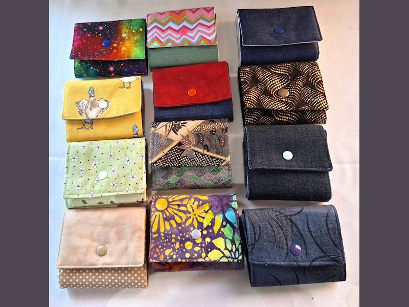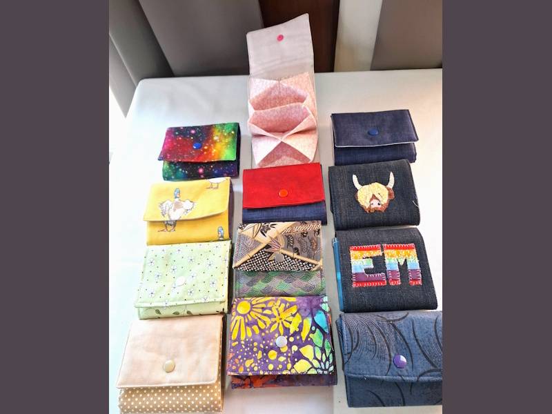 Today we had a workshop to make a credit card/purse with RFID protection which was organised and taught by Janet. Here are photos of the purses we made. An enjoyable day was had by all.